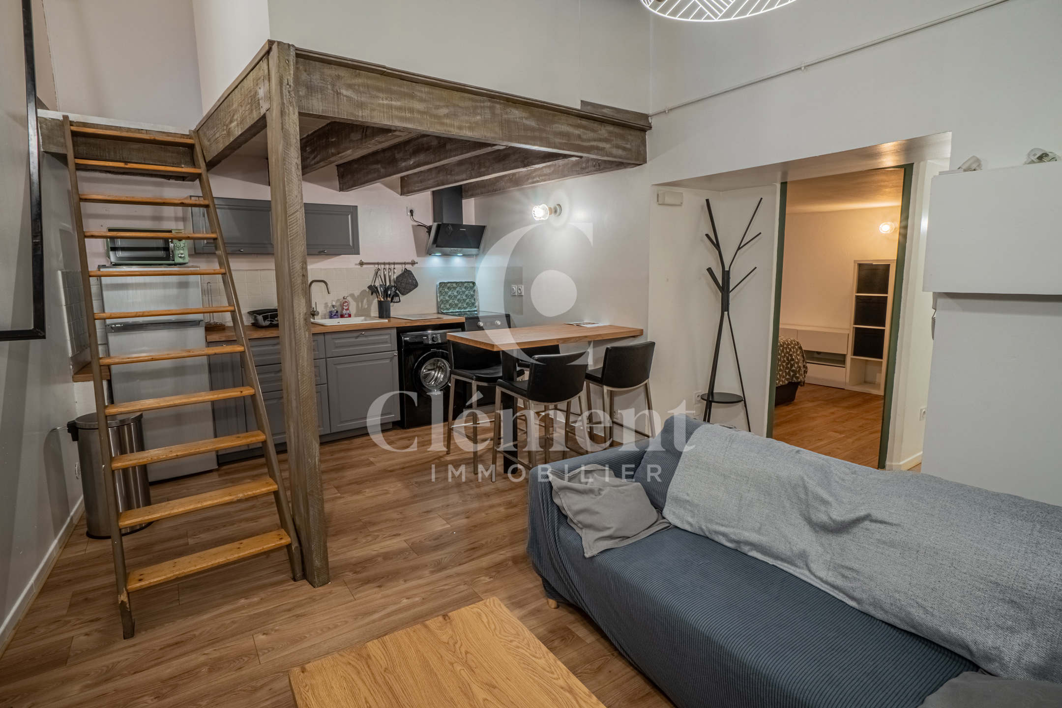 Fonctionnel et bien agencé, l’appartement se compose d’une pièce de vie avec cuisine aménagée et équipée, d’une chambre confortable avec rangements, d’une salle d’eau sur mezzanine, et un WC séparés. L’ensemble bénéficie d’une belle hauteur sous plafond, donnant du volume à l’espace.